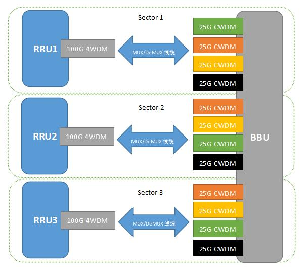 ends. The antenna side can use 100G QSFP28 4WDM full-service temperature 10KM