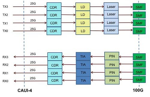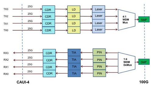 100G CWDM4 is a multi-source protocol (MSA). The 100G CWDM4 optical module introduces WDM technology and adopts a duplex LC interface. When used together with single-mode fiber, the transmission distance can reach 2km.