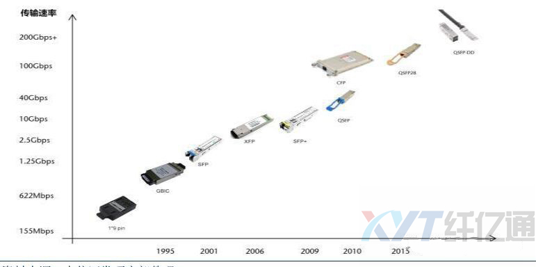 1) Optical modules divided into 1.25Gb/s, 10Gb/s, 25Gb/s, 40Gb/s, 100Gb/s, and 400Gb/s according to the transmission rate